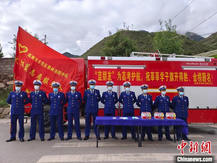 圖為消防指戰(zhàn)員為考生設(shè)立志愿服務(wù)點。卡若區(qū)森林消防中隊 攝