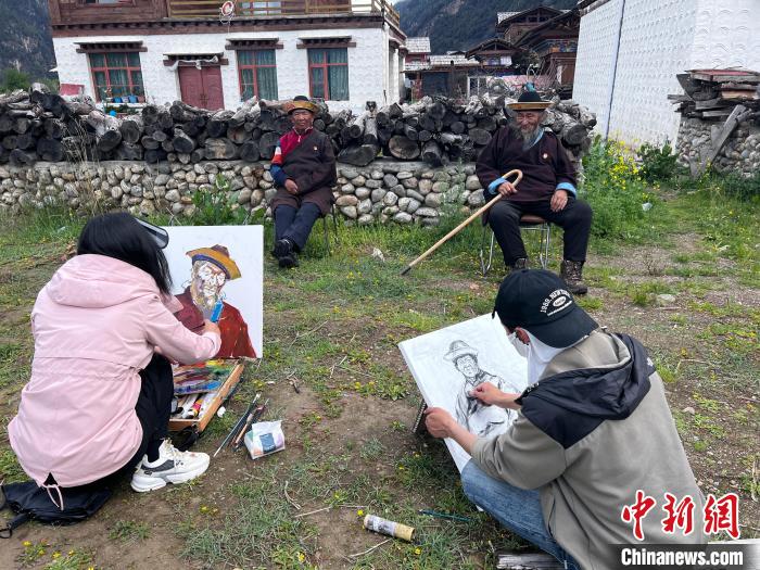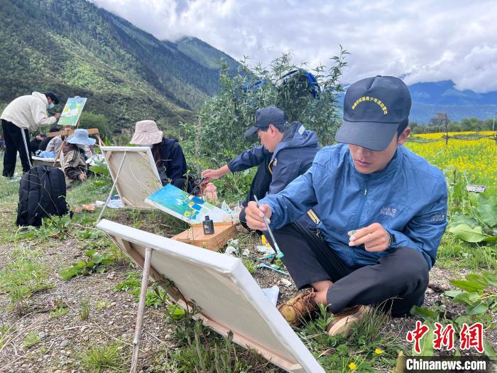 圖為西藏大學藝術學院的學生正在戶外寫生。共青團西藏自治區(qū)委員會供圖