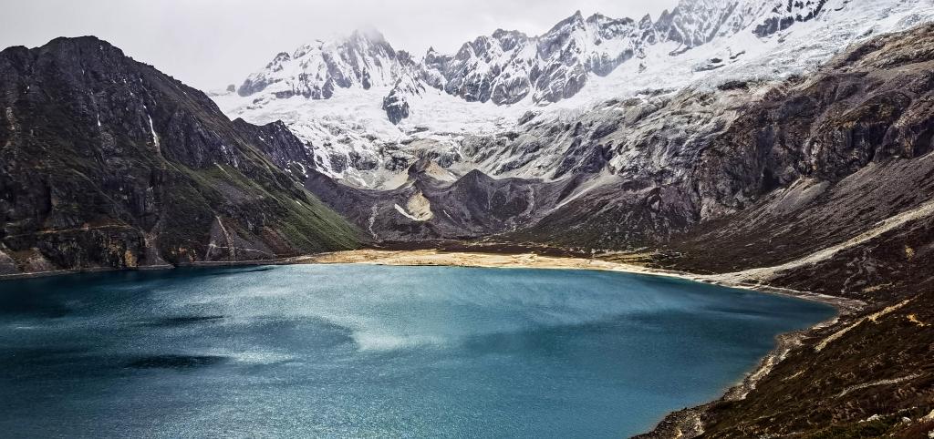 5月1日在西藏山南市從白瑪林錯方向拍攝的庫拉崗日冰川(手機照片)。新華社記者 沈虹冰 攝