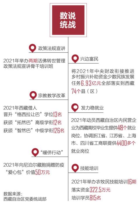 西藏自治區(qū)黨委統(tǒng)戰(zhàn)部介紹,2022年,全區(qū)統(tǒng)戰(zhàn)系統(tǒng)以全力服務(wù)迎接黨的二十大為主線,持續(xù)深化反分裂斗爭,確保國家安全和長治久安。加大活佛轉(zhuǎn)世政策法規(guī)宣傳宣講力度,牢牢掌握反分裂斗爭全局主動(dòng)性。在鑄牢中華民族共同體意識上見行見效,有效抵御各種極端、分裂思想的滲透,堅(jiān)決防范民族領(lǐng)域重大風(fēng)險(xiǎn)隱患。