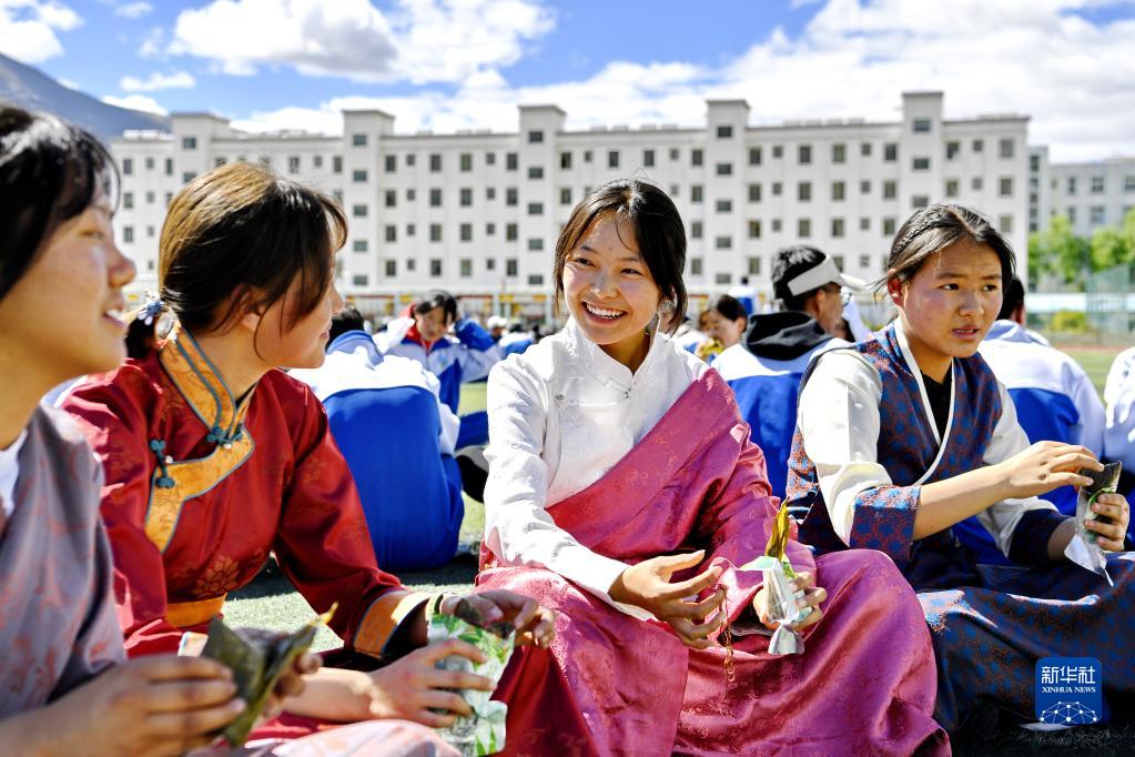 西藏山南市第二高級(jí)中學(xué)的學(xué)生在學(xué)校過端午節(jié)(2022年6月3日攝)。新華社記者 張汝鋒 攝