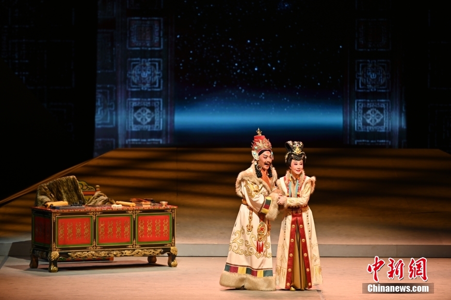 10月11日晚,大型新編歷史粵劇《文成公主》在廣東廣州大劇院首演。該劇以文成公主和親進(jìn)藏的歷史事件為依據(jù)創(chuàng)作,講述了文成公主堅(jiān)守吐蕃四十年,促進(jìn)了吐蕃經(jīng)濟(jì)、文化的發(fā)展,加強(qiáng)了漢藏人民的友好關(guān)系。 中新社記者 陳楚紅 攝