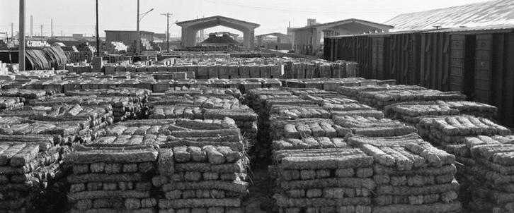 1989年2月,湖南、云南、四川等省專(zhuān)門(mén)為西藏人民生產(chǎn)的民族磚茶堆放在青海省格爾木火車(chē)站,等待西藏運(yùn)輸車(chē)隊(duì)前來(lái)裝運(yùn)。
