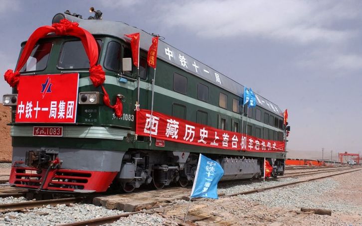 2004年3月23日,在海拔4704米的青藏鐵路海拔最高鋪架基地——西藏安多鋪架基地上,中鐵十一局1083號(hào)東風(fēng)4型內(nèi)燃機(jī)車(chē)向雪域高原緩緩駛來(lái)。這標(biāo)志著西藏歷史上出現(xiàn)了第一臺(tái)鐵路機(jī)車(chē)。