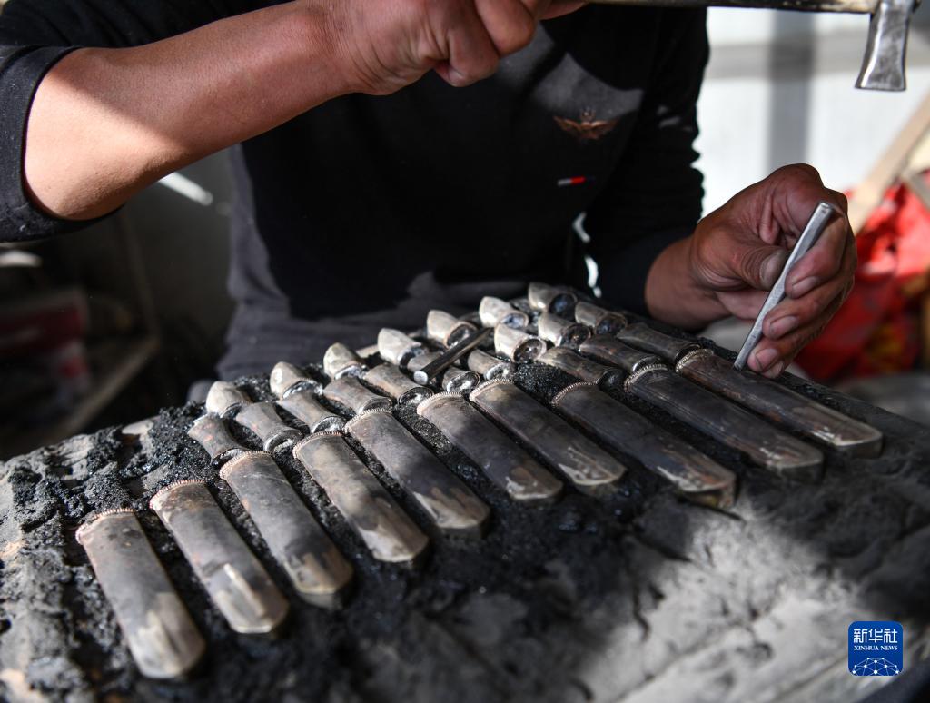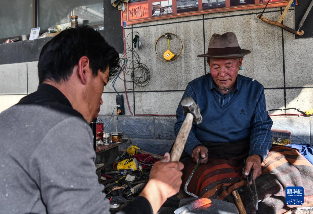 普達瓦在制作拉孜藏刀(1月19日攝)。新華社記者 晉美多吉 攝
