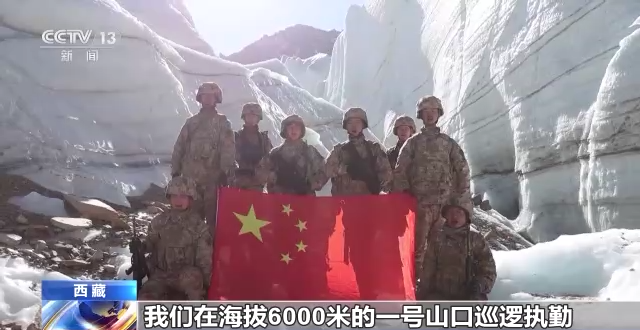 “高原戍邊模范營(yíng)”巡邏分隊(duì)全體官兵:我們?cè)诤0?000米的一號(hào)山口巡邏執(zhí)勤,經(jīng)觀察無(wú)異常,特向全國(guó)人民報(bào)告,邊防有我在,祖國(guó)請(qǐng)放心!