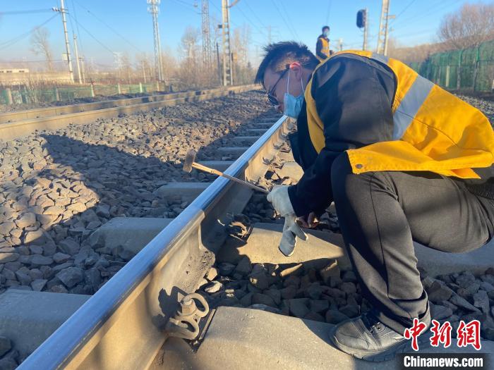 “春運(yùn)期間,正是鋼軌折斷多發(fā)期,一定要仔細(xì)檢查線路的高低狀態(tài),一旦有異常必須立刻記錄解決,決不能馬虎?!弊叩骄€路防斷重點(diǎn)區(qū)段時,中國鐵路青藏集團(tuán)有限公司西寧工務(wù)段湟源線路車間檢查工區(qū)工長侯鵬俯身趴在鋼軌上,仔細(xì)觀察并叮囑,锃亮的鋼軌頂面反射著刺眼的白光,在他的臉上一閃一閃。