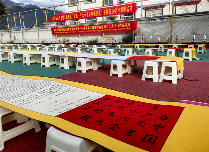 創(chuàng)新載體,全方位宣傳。林芝市統(tǒng)籌各類宣傳資源,線上線下同頻共振,全方位、多角度、寬領(lǐng)域、深層次宣傳黨的二十大精神和區(qū)黨委十屆三次全會(huì)、市委二屆三次全會(huì)精神,營造學(xué)習(xí)宣傳的濃厚氛圍。一是新聞宣傳強(qiáng)信心。林芝報(bào)、林芝廣播電視臺(tái)、西藏林芝網(wǎng)、微林芝等市屬主流媒體紛紛開設(shè)《學(xué)習(xí)貫徹黨的二十大》《新時(shí)代新征程新偉業(yè)》等多個(gè)專題專欄,持續(xù)推出學(xué)習(xí)貫徹黨的二十大精神相關(guān)報(bào)道。截至目前,共刊播《基層宣講員讓黨的二十大精神翩翩飛入百姓家》《軍民共話美好未來 繪就美麗鄉(xiāng)村新畫卷》等相關(guān)新聞2500余條。二是社會(huì)面宣傳筑同心。采取“屏、板、欄、幅”立體宣傳方式,在全市各級(jí)黨政機(jī)關(guān)和企事業(yè)單位大門LED電子顯示屏以及市、縣城區(qū)主要街道、跨街龍門、出租車頂燈、汽車站等公共場所的宣傳媒介上滾動(dòng)播放自治區(qū)統(tǒng)一印發(fā)的宣傳標(biāo)語1.2萬余條次,更新懸掛國旗3.5萬余面,制作發(fā)放宣傳海報(bào)1.5萬張、宣傳品2500余個(gè),形成抬頭可見、隨處可學(xué)的濃厚社會(huì)氛圍。察隅縣上察隅鎮(zhèn)遲巴村村“兩委”和駐村工作隊(duì)用彩色粉筆繪制黨的二十大、“新黨章”等主題黑板報(bào),用畫筆向村民傳遞黨的最新政策,深受群眾喜愛。三是網(wǎng)絡(luò)宣傳聚民心。充分發(fā)揮新媒體平臺(tái)宣傳形式豐富的特點(diǎn),持續(xù)推送重磅報(bào)道和重點(diǎn)文章,策劃打造一批融媒體產(chǎn)品,在全網(wǎng)迅速興起學(xué)習(xí)宣傳貫徹會(huì)議精神熱潮。市委網(wǎng)信辦策劃制作短視頻《學(xué)習(xí)黨的二十大精神 談心得感悟》、“林芝融媒”抖音號(hào)推出《二十大時(shí)光》微視頻,將鏡頭對(duì)準(zhǔn)二十大代表、基層黨員群眾,展現(xiàn)全市干部群眾積極向上的良好風(fēng)貌?!鞍鸵巳诿健倍兑籼?hào)推出“黨的二十大精神快問快答”系列活動(dòng),線上線下聯(lián)動(dòng)學(xué)習(xí),推動(dòng)黨的二十大精神入腦入心。“察隅融媒”抖音號(hào)策劃開展《鄉(xiāng)村振興正當(dāng)時(shí)》黨的二十大主題抖音直播活動(dòng),通過網(wǎng)絡(luò)直觀展現(xiàn)新時(shí)代察隅新農(nóng)村、新氣象、新希望。目前已開展7場直播活動(dòng),觀看人數(shù)達(dá)10萬人次。四是文藝宣傳暖人心。充分發(fā)揮市、縣(區(qū))、村三級(jí)文藝文化團(tuán)體作用,組織開展“深入生活 扎根人民”“幸福不忘共產(chǎn)黨 陽光路上夢起航”等各類文藝文化活動(dòng),精心打造文藝精品力作,用文藝活動(dòng)、文藝作品溫暖人心。截至目前,各級(jí)文藝演出隊(duì)開展文藝匯演293場次,參與人數(shù)4.2萬余人次;創(chuàng)作推出音樂作品《沐浴幸?!?、攝影作品《我和國旗》、書法美術(shù)作品《建功新時(shí)代 奮進(jìn)新征程》、文學(xué)作品《黨的光輝照萬家》等文藝作品300余個(gè)。波密縣完全小學(xué)在崗云杉林景區(qū)組織開展“學(xué)習(xí)黨的二十大,爭做好少年”采風(fēng)寫生活動(dòng),學(xué)生們以文藝創(chuàng)作的形式學(xué)習(xí)黨的二十大精神,并將學(xué)習(xí)成果轉(zhuǎn)化到作品中。市民族藝術(shù)團(tuán)以深入挖掘歷史文化、講好紅色故事為主題,籌拍了微電影《立定村屹立的紅旗》。市文聯(lián)書法美術(shù)家協(xié)會(huì)理事茹輝春同志,在黨的二十大召開后用行、楷兩種書法形式撰寫了黨的二十大報(bào)告全文書卷,書卷共有八卷,每卷長30米。市委宣傳部、市文廣局、市文聯(lián)組織市書法美術(shù)家協(xié)會(huì)開展“禮贊二十大·送福進(jìn)萬家”林芝市2023年新春書法美術(shù)家“深入生活 扎根人民”送祝福和采風(fēng)活動(dòng),共開展送春聯(lián)活動(dòng)15場次,送出對(duì)聯(lián)、福字、掛軸、繪畫等作品8950幅(對(duì)),服務(wù)群眾6700余人次。