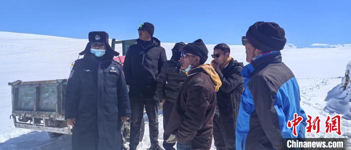 去年10月份,一場突如其來的大雪困住了牧場上的2000多只羊。為了牧場轉場順利,這群移民警察聯(lián)合當?shù)卣ぷ魅藛T還有老百姓深入到牧場腹地。洛桑曲扎說:“白天進去,到了第二天才出來。當時邊鏟雪邊往里走,放牧點的積雪深到膝蓋。把羊群轉出去后,我們的車陷在了里面,大家穿著大衣在車上僅吃了泡面挺過了一晚上?!?除了這些,他記憶里,還有數(shù)不清的救援。
