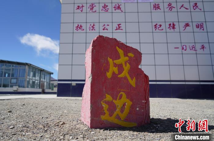 圖為派出所內(nèi)就地取材做的戍邊石。貢嘎來松 攝