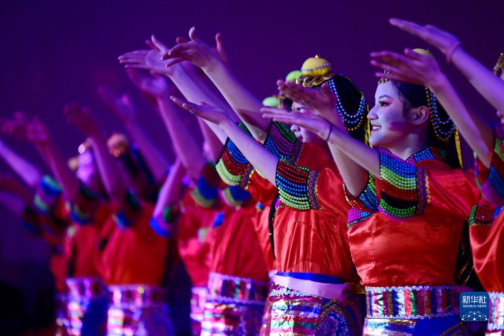 2月21日,學(xué)生在西安市浐灞第一中學(xué)舉行的藏歷新年團(tuán)拜活動(dòng)上表演藏族舞蹈。新華社記者 李一博 攝