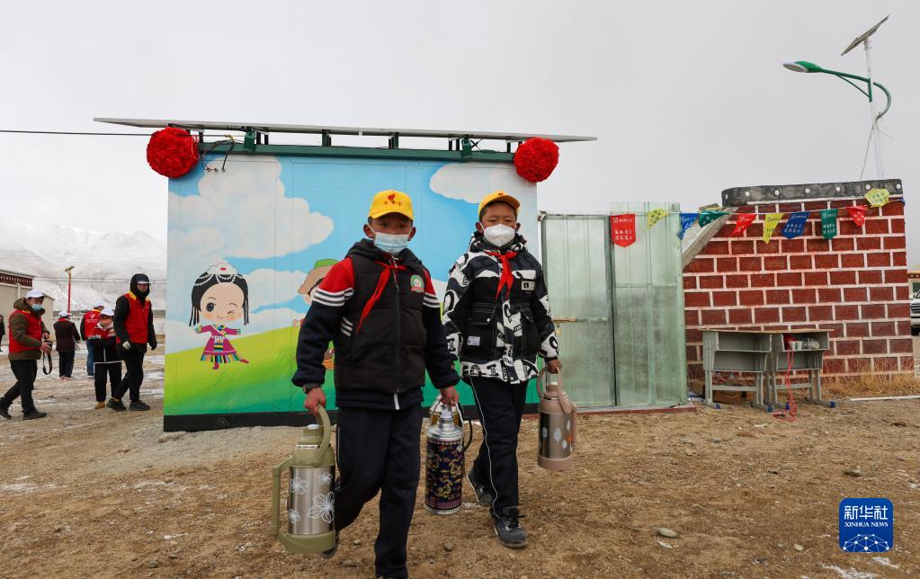 3月21日,那曲市色尼區(qū)香茂鄉(xiāng)小學(xué)的同學(xué)們?cè)谛聠⒂玫膬羲敬蛩P氯A社記者 姜帆 攝