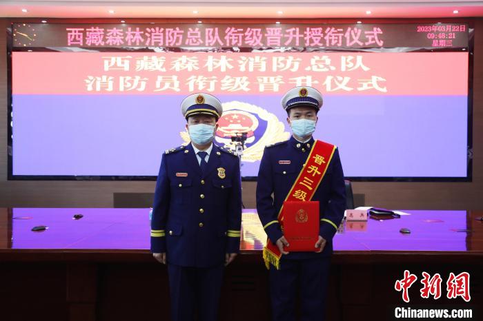 3月22日,頒發(fā)晉升命令狀。 西藏森林消防總隊(duì)供圖