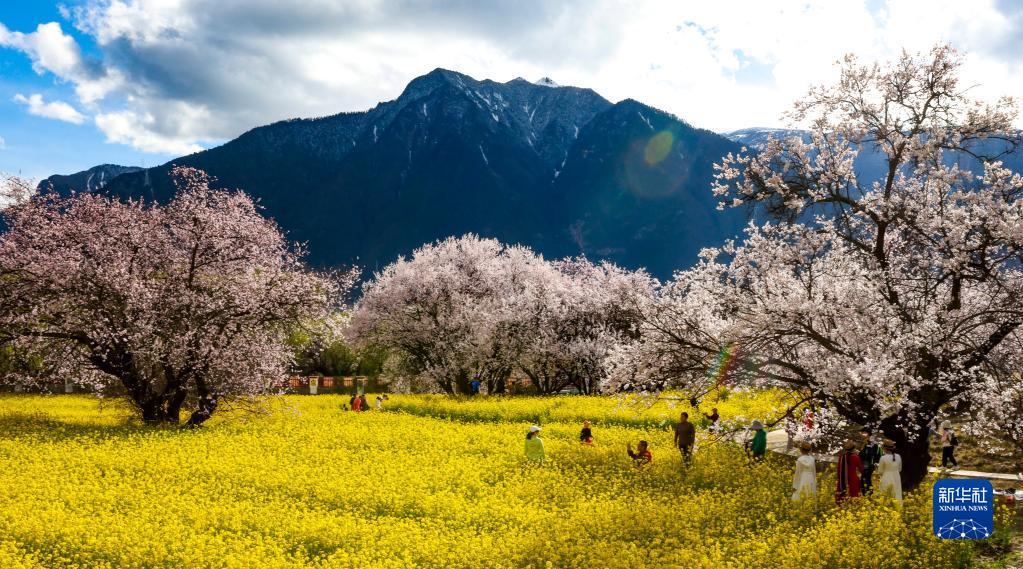 目前,西藏林芝市嘎拉村漫山遍野的桃花綻放,美麗春景引人入勝。