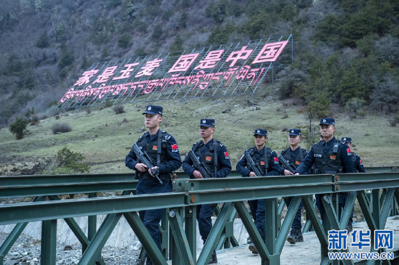 4月8日,玉麥邊境派出所民警正在巡邏。新華網 旦增努布 攝