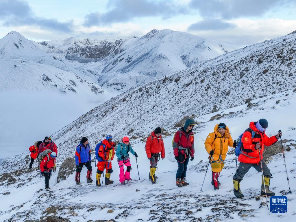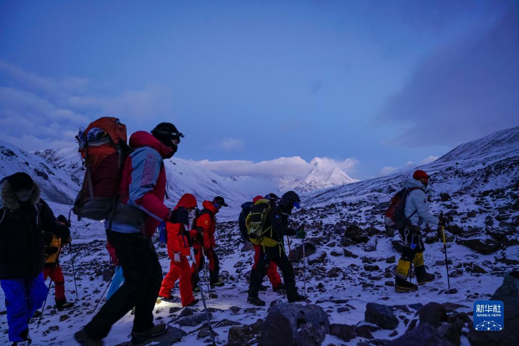 5月3日,登山愛好者正在向海拔6010米的洛堆峰峰頂進發(fā)。新華社記者 黃耀漫 攝