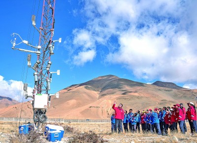 5月15日,珠峰站工作人員席振華給孩子們講解科學(xué)儀器的功能作用。當(dāng)日,西藏日喀則市定日縣扎西宗鄉(xiāng)完全小學(xué)的學(xué)生來(lái)到中國(guó)科學(xué)院珠穆朗瑪大氣與環(huán)境綜合觀測(cè)研究站(簡(jiǎn)稱“珠峰站”),參加主題為“遇見(jiàn)科學(xué) 遇見(jiàn)青藏高原”的公眾科學(xué)日活動(dòng)。孩子們參觀科學(xué)觀測(cè)儀器,零距離感受“第二次青藏科考”,在重點(diǎn)實(shí)驗(yàn)室聽(tīng)了一堂生動(dòng)的科學(xué)課。新華社記者 孫非攝