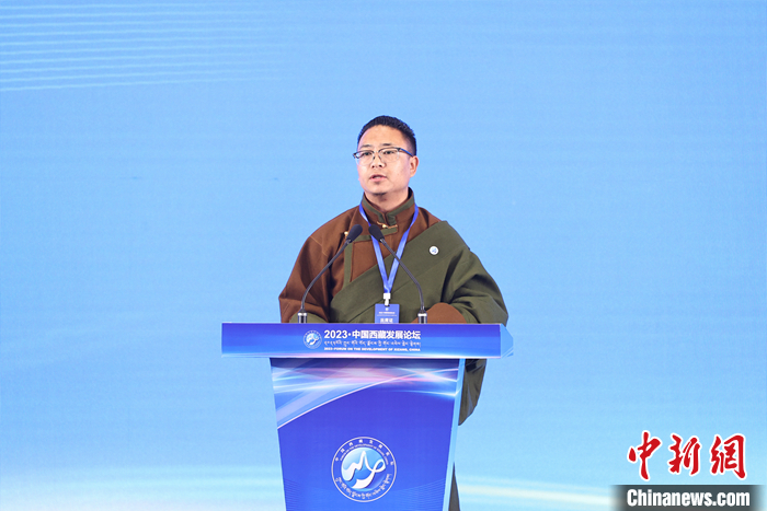 5月23日,“2023·中國西藏發(fā)展論壇”在北京舉行。中國藏學(xué)研究中心總干事鄭堆發(fā)言介紹了中共十八大以來,西藏傳統(tǒng)文化得到傳承、保護和發(fā)展的情況。 中新社記者 蔣啟明 攝