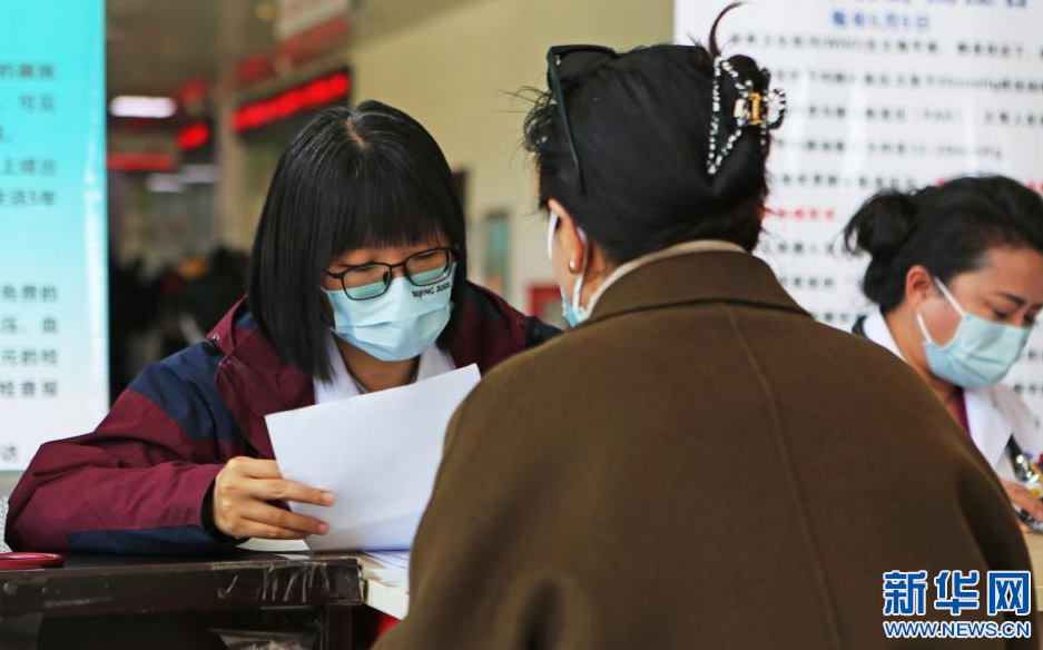 在肺動(dòng)脈高壓相關(guān)疾病義診活動(dòng)中,楊蘇喬醫(yī)生(左一)在為患者提供服務(wù)(5月5日攝)。新華社記者 邵澤東 攝