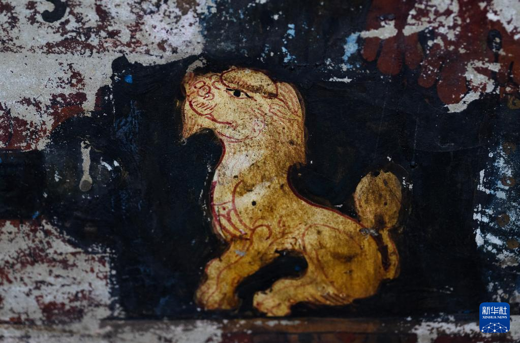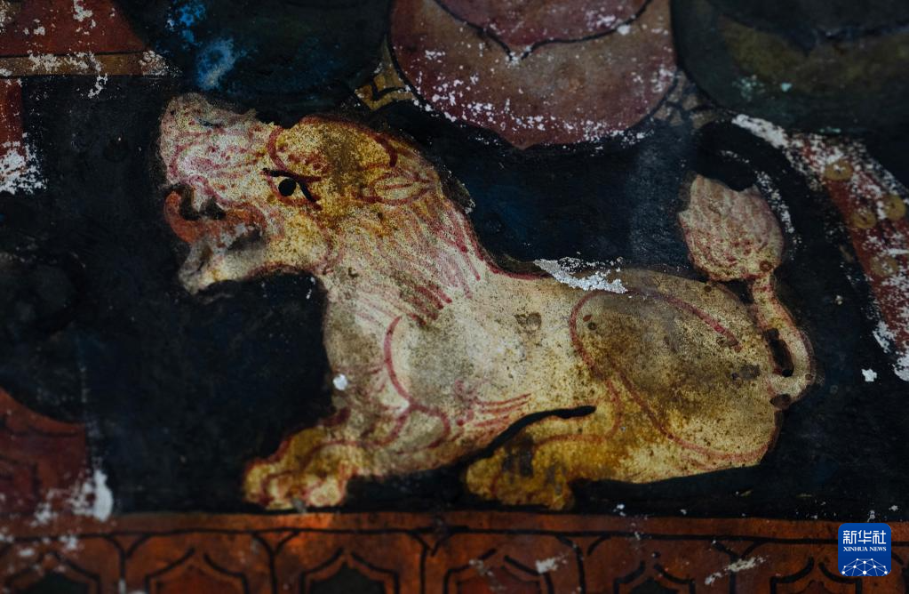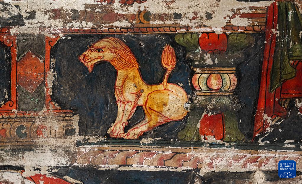 這是5月26日拍攝的皮央石窟壁畫中的獅子像。新華社記者 費茂華 攝