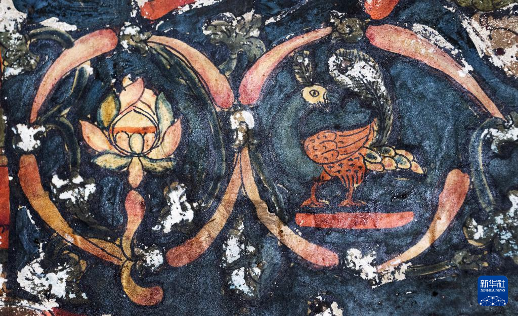 這是5月26日拍攝的皮央石窟壁畫中的孔雀像。新華社記者 費茂華 攝