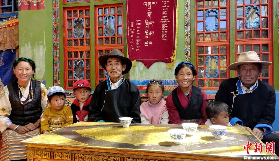 西藏日喀則市謝通門縣農(nóng)牧區(qū)脫貧致富家庭的“四世同堂”合影。貢桑拉姆 攝