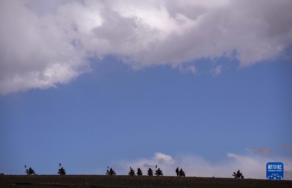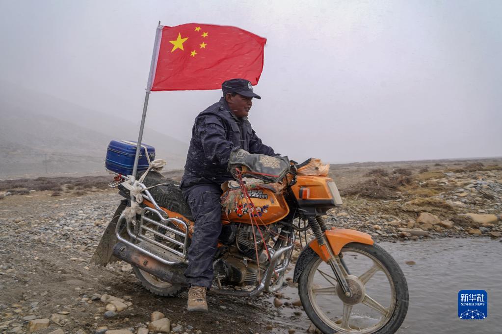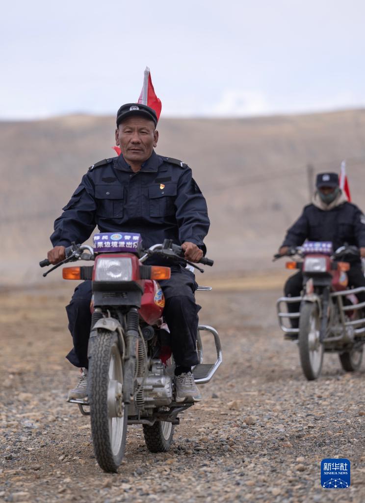 車輪滾滾,黃沙漫漫,一隊(duì)摩托車風(fēng)馳電掣般駛來(lái)……這里是平均海拔超過5000米的西藏日喀則市薩嘎縣昌果鄉(xiāng),雖然已是初夏時(shí)節(jié),但依然寒風(fēng)刺骨。50歲的昌果護(hù)邊聯(lián)防隊(duì)隊(duì)長(zhǎng)石角帶領(lǐng)18名隊(duì)員,騎著摩托車在邊境線巡邏。