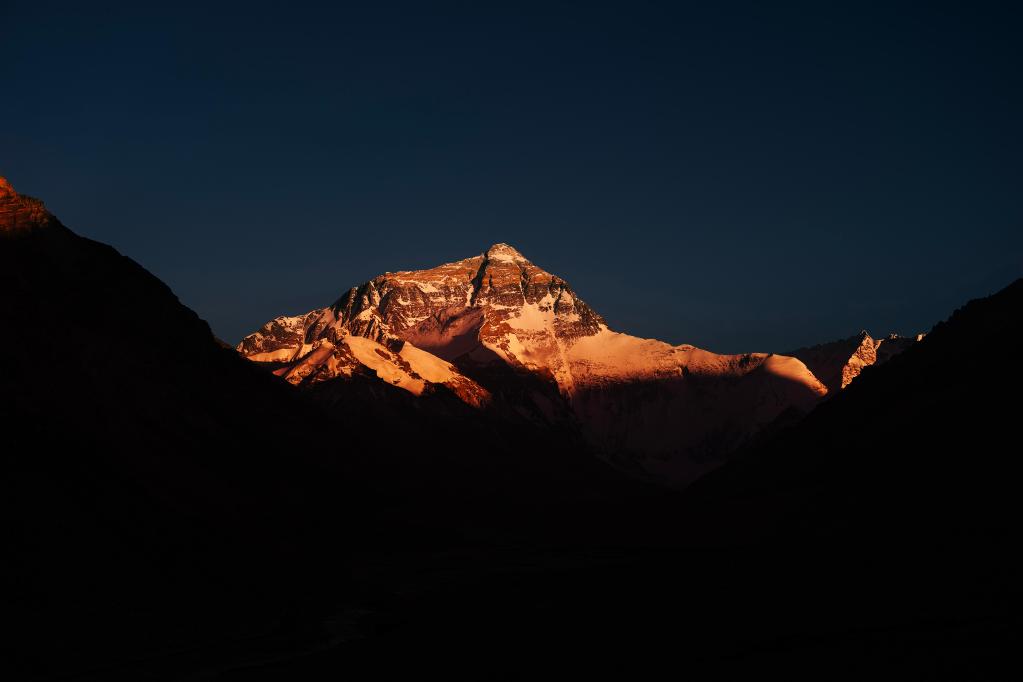 巍峨的珠穆朗瑪峰屹立于青藏高原,珠峰地區(qū)氣候復雜,景色瞬息萬變。“國道之行 從雪山奔向大?!眻蟮澜M在落日時分來到珠穆朗瑪峰腳下,記錄下世界之巔的“日照金山”壯美場景。