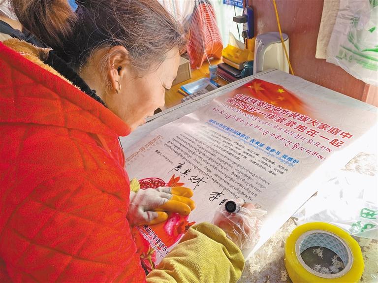 圖為那曲市索縣開(kāi)展“鑄牢中華民族共同體意識(shí)·我承諾、我參與、我維護(hù)”主題活動(dòng)中,居民在簽承諾書(shū)。