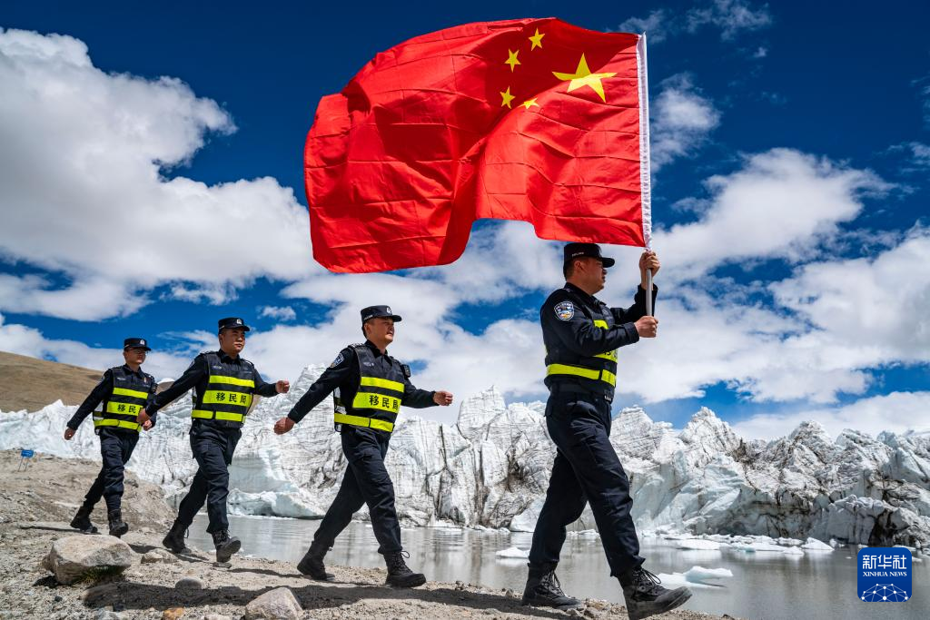 普瑪江塘邊境派出所的民警們?cè)趰彶急ǜ浇策墸?月4日攝)。新華社記者 孫非 攝