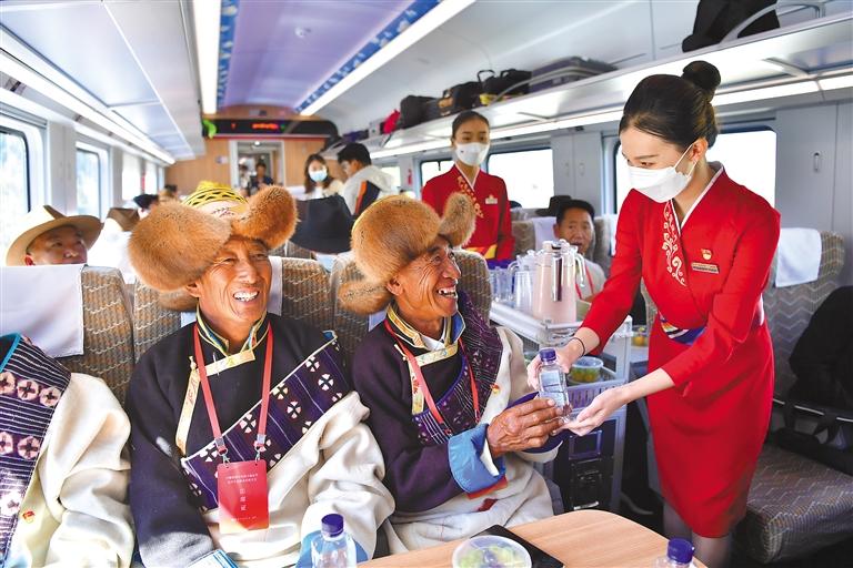 “這兩年,我們與自治區(qū)政府部門及區(qū)教育廳建立聯(lián)動機制,動態(tài)掌握當?shù)厝罕姵鲂行枨蠛蛯W生放假安排,爭取運力政策,有針對性地制定運輸方案,先后增開多趟林芝—日喀則、林芝—拉薩方向的學生專列、旅游專列、務工專列。”拉林鐵路林芝站站長朱連祥介紹,靈活多樣的出行專列,不僅便利了各地群眾,對于促進藏東南地區(qū)間的經(jīng)濟發(fā)展、文化交流也具有重大意義,廣大民眾共享著鐵路事業(yè)發(fā)展的成果。