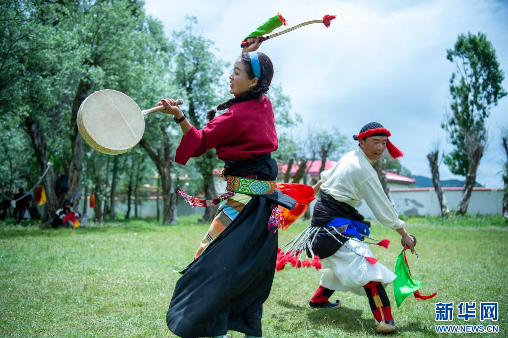 7月12日,西藏昌都市丁青縣尺犢鎮(zhèn)烏巴村文藝演出隊(duì)隊(duì)員在排練。 新華網(wǎng) 旦增努布 攝