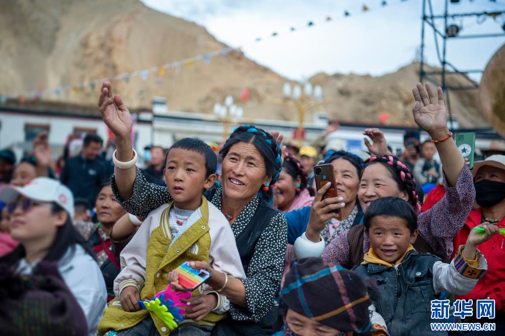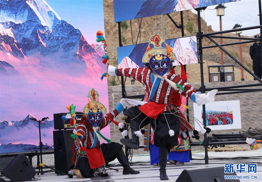 7月23日,在西藏定日2023珠峰音樂美食節(jié)現(xiàn)場,民間藝術(shù)團(tuán)表演國家級非物質(zhì)文化遺產(chǎn)定日洛諧。新華網(wǎng)發(fā) 李騰 攝