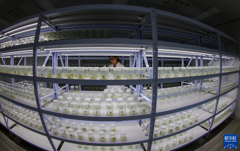 劉利平博士在高原核桃研究所檢查核桃組織培養(yǎng)標本(7月27日攝)。新華社記者 姜帆 攝