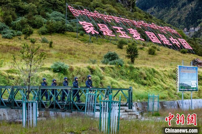 圖為袁浩杰與戰(zhàn)友在海拔5373米的普瑪江塘邊境派出所巡邏。山南邊境管理支隊供圖