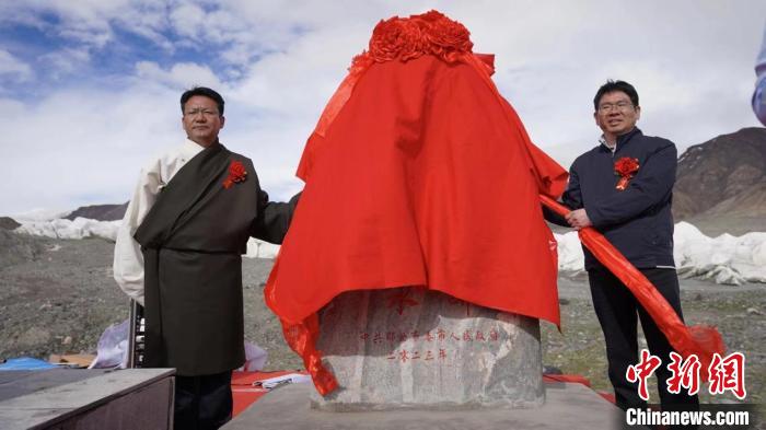 圖為那曲市委副書記、市長旦巴(圖左)和水利部水資源管理中心副處長張遠東一同為“長江第一滴水”揭碑。拉巴卓瑪攝