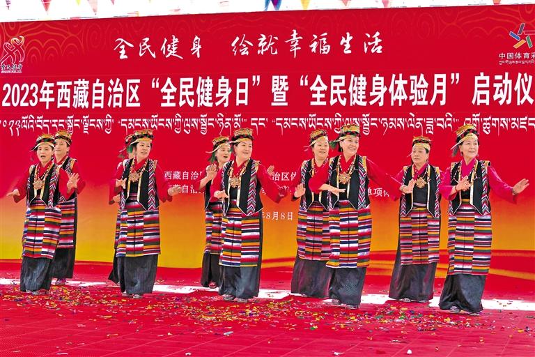 8月8日,是第15個(gè)“全民健身日”。為深入貫徹落實(shí)全民健身國(guó)家戰(zhàn)略,全面展示西藏廣泛開(kāi)展全民健身活動(dòng)成果,推進(jìn)健康西藏建設(shè),2023年西藏自治區(qū)“全民健身日”暨“全民健身體驗(yàn)月”啟動(dòng)儀式在拉薩市賽馬場(chǎng)舉行。來(lái)自全區(qū)各地的健身愛(ài)好者,表演了鍋莊、健身操、太極拳、柔力球等群眾喜聞樂(lè)見(jiàn)的健身項(xiàng)目,科學(xué)引導(dǎo)群眾積極參與體育鍛煉、增強(qiáng)體魄、健康生活。