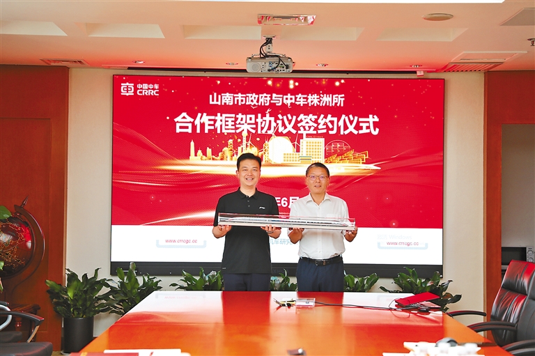 山南市政府與中車(chē)株洲所簽署合作框架協(xié)議現(xiàn)場(chǎng)。