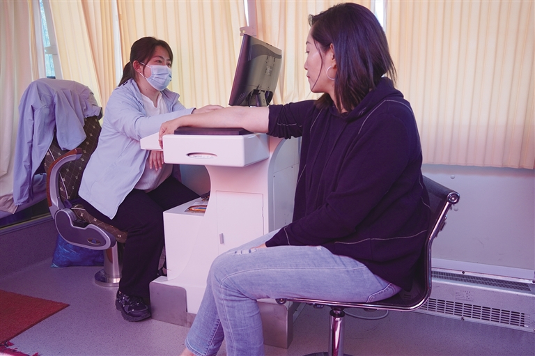 工作人員為群眾做糖基化風(fēng)險(xiǎn)預(yù)測(cè)。