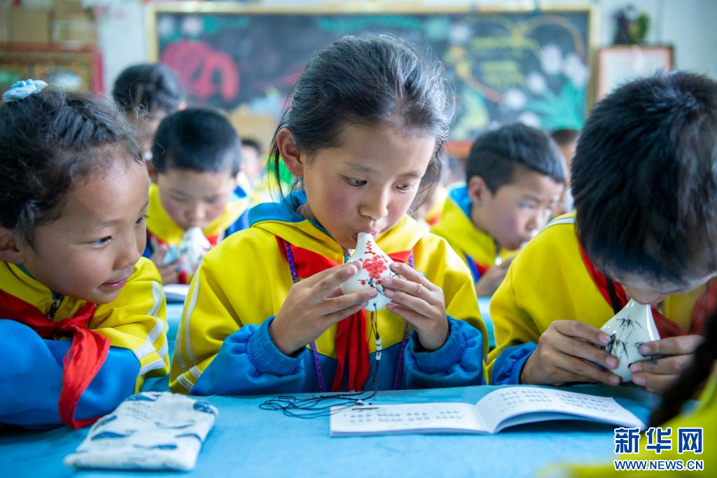 圖為索縣第一小學學生在學習陶笛(9月7日攝)。新華網(wǎng) 旦增努布 攝
