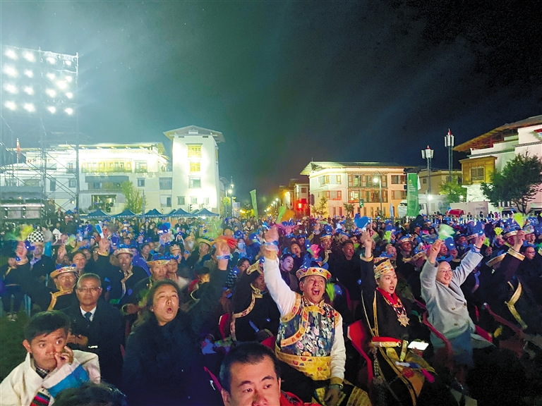 觀眾觀看第三屆中國(guó)西藏“環(huán)喜馬拉雅”國(guó)際合作論壇文藝演出。記者 洛?!z