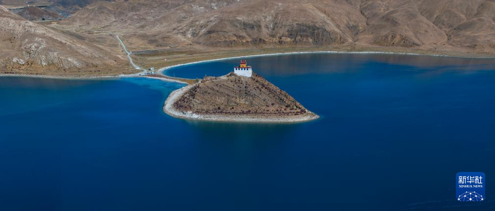 這是10月25日拍攝的羊卓雍錯和日托寺。新華社記者 姜帆 攝