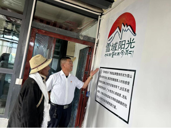 向群眾介紹西藏?zé)煵荨把┯蜿?yáng)光”黨建精神。新華網(wǎng)發(fā) 單增羅布攝