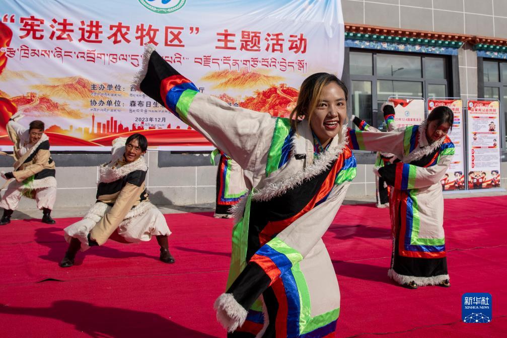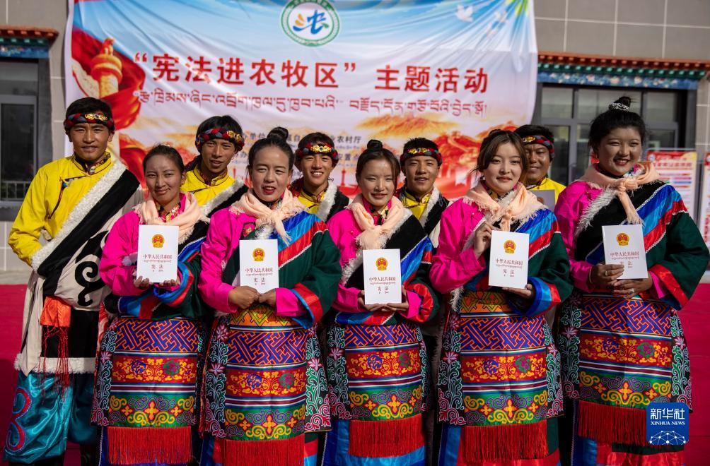 當(dāng)日,“憲法進(jìn)農(nóng)牧區(qū)”主題活動(dòng)在西藏山南市貢嘎縣森布日生態(tài)搬遷安置點(diǎn)舉行,西藏自治區(qū)農(nóng)業(yè)農(nóng)村廳向當(dāng)?shù)剞r(nóng)牧民群眾贈送了《中華人民共和國憲法》及相關(guān)法律書籍。森布日位于雅魯藏布江北岸,海拔約3600米,聚居著來自那曲雙湖、尼瑪、安多等縣的高海拔生態(tài)搬遷移民。