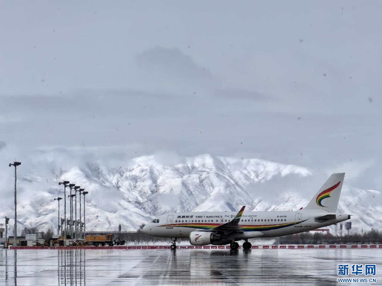 圖為拉薩貢嘎機(jī)場機(jī)坪除冰雪保障作業(yè)。新華網(wǎng) 白瑪群宗 攝