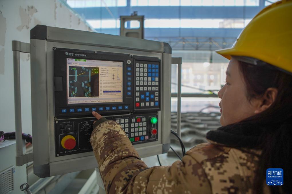 工人在3D打印建筑機器的操控臺上操作(12月12日攝)。新華社記者 邵澤東 攝