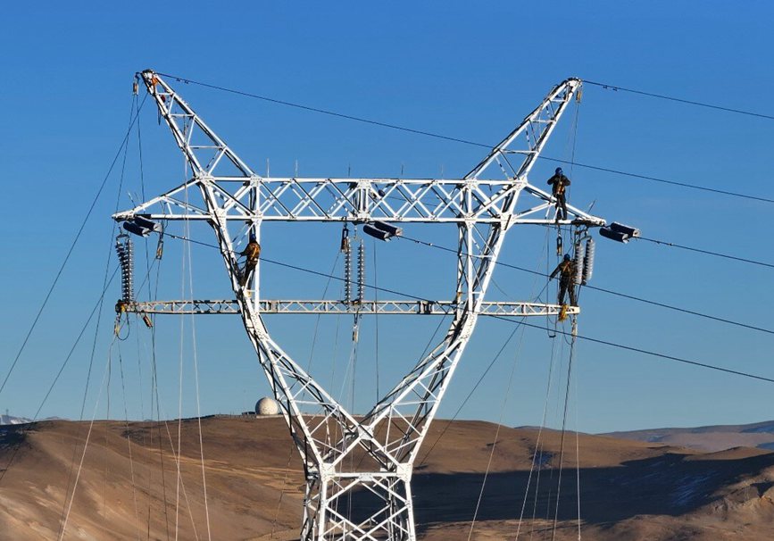 “還有10米,5米,導(dǎo)線到位!”12月12日,18時,隨著對講機(jī)傳出的N5號塔位導(dǎo)線到位,標(biāo)志著海拔4600米的西藏自治區(qū)那曲市色尼區(qū)國能100兆瓦風(fēng)電110千伏送出工程全部貫通。
