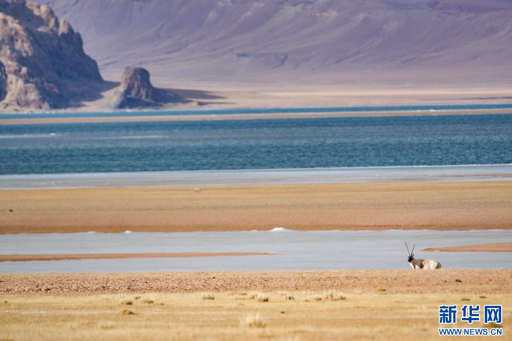 冬日的色林錯,景色怡人,藏羚羊在色林錯畔覓食,形成一幅生動美麗的高原生態(tài)畫卷。