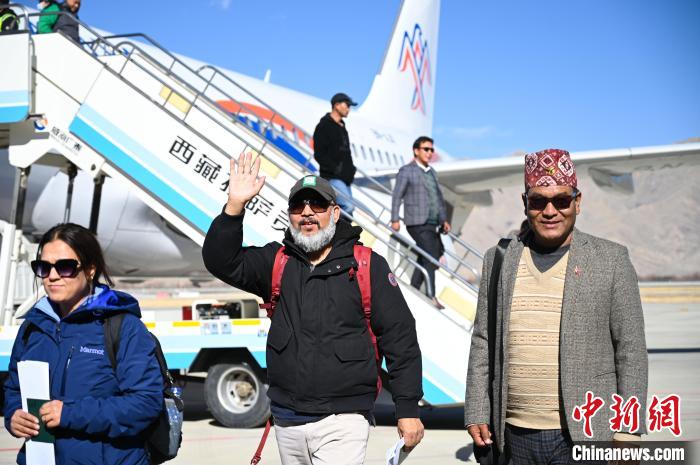 12月28日,從尼泊爾加德滿都抵達拉薩貢嘎國際機場的旅客。中新社記者 趙朗 攝