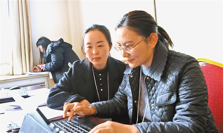 記者在兩會新聞中心趕稿。記者 洛桑 攝